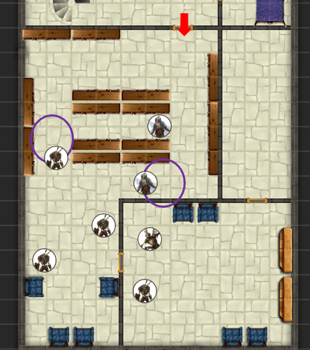 After taking a minute to catch their breaths, the PCs hear commotion coming from the other side of the corridor: THE VAULT! The Blackrose, their staff and guests, were hidden in it with the dwarf!